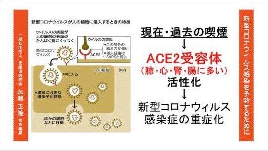 しかし、新型コロナウイルスの感染受容体となるACE2(アンギオテンシン転換酵素2)の発現量が、喫煙マウスやヒトで高いことを示し、喫煙者の感染リスクは高い可能性があるという報告もあり、喫煙が新型コロナウイルス感染に与える影響は明らになっていなかった。